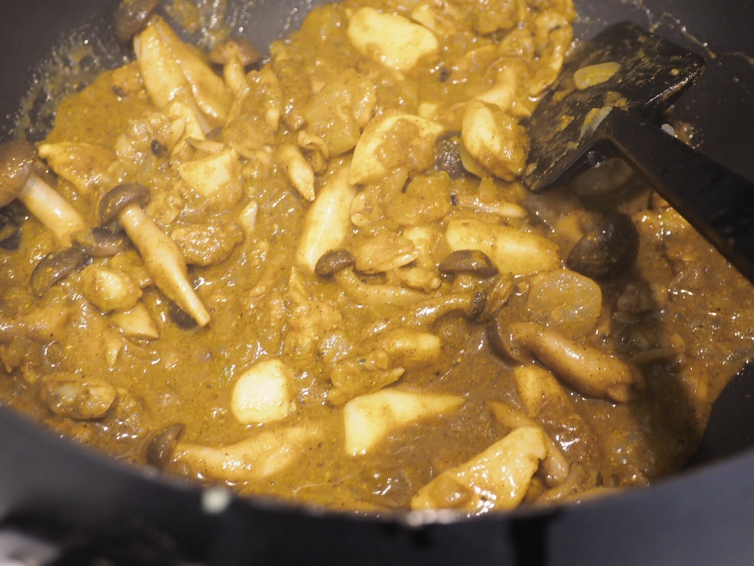 かき混ぜながらスパイスが馴染んだら牛乳を入れ、約5分煮込む