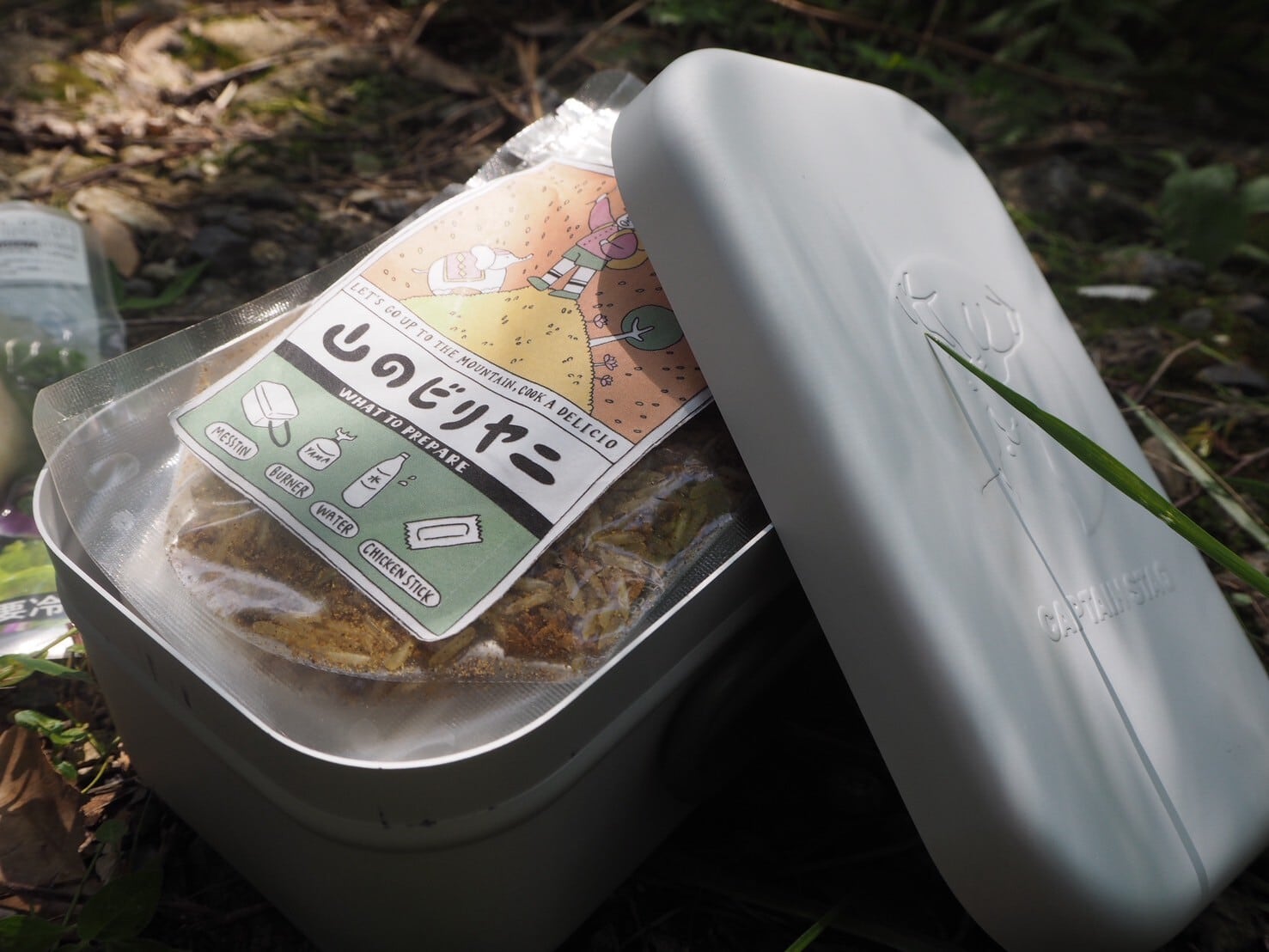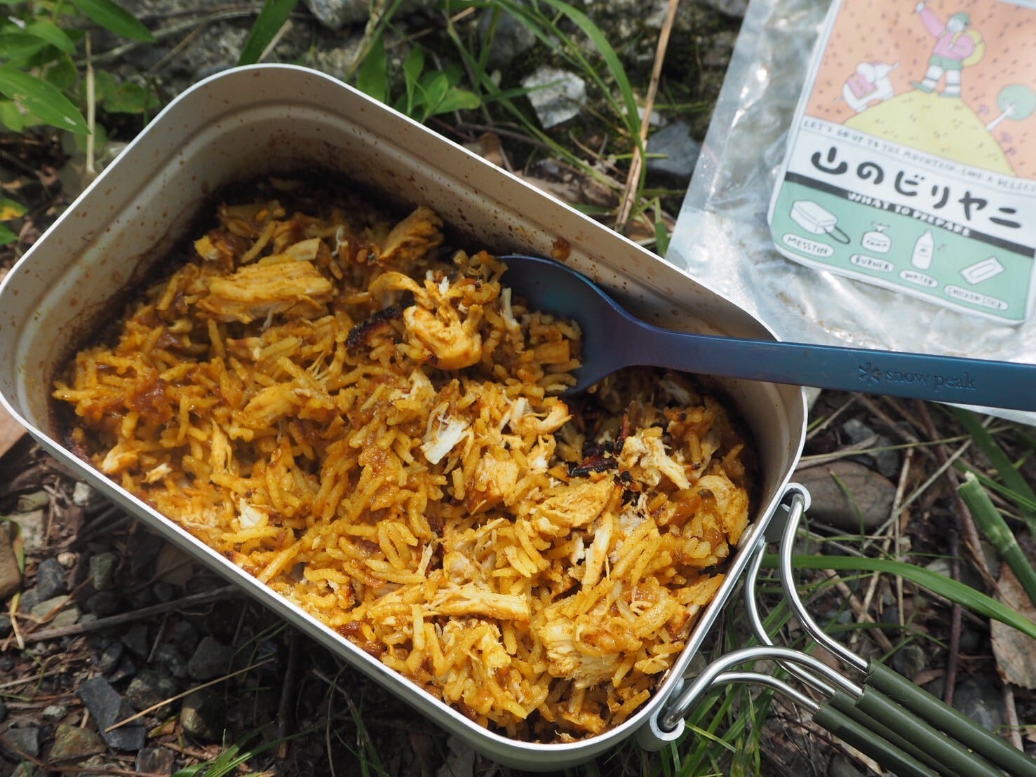 フライパンもしくはメスティンで作る「山のビリヤニ」をセットにしました。